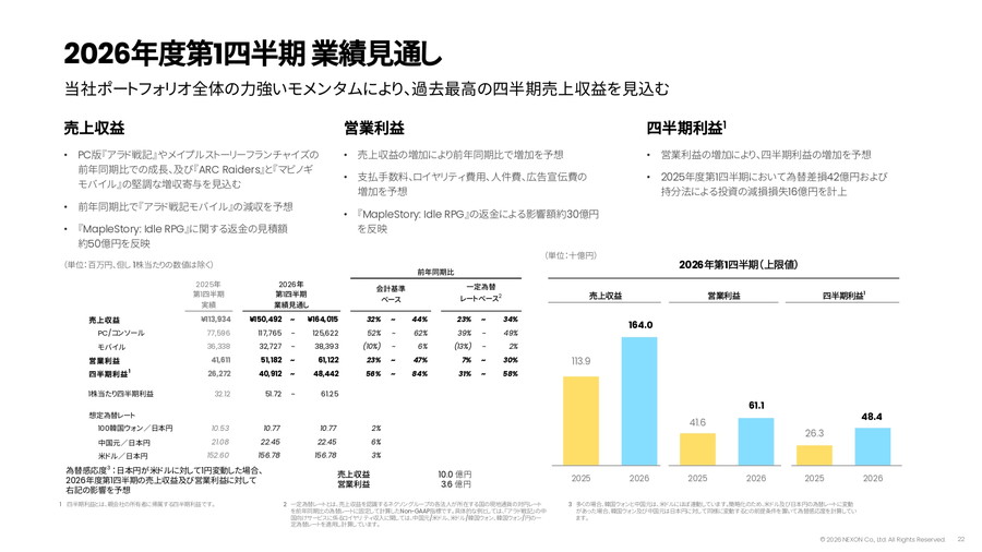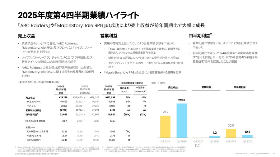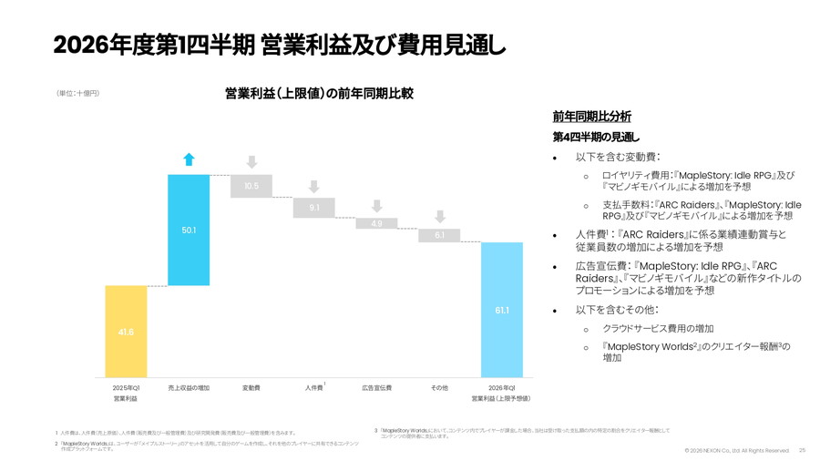 『アラド戦記』大型アップデート、『ARC Raiders』の継続寄与、『マビノギモバイル』の貢献に加え、『MapleStory: Idle RPG』も返金影響を織り込みつつ主要タイトルとして寄与する見通しだ。