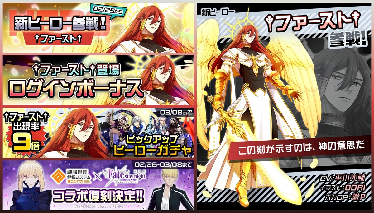 『#コンパス』は2月25日から、新ヒーロー「†ファースト†」が登場。ログボ&ピックアップ、ヒーロー獲得応援ガチャといった施策を開催中だ。