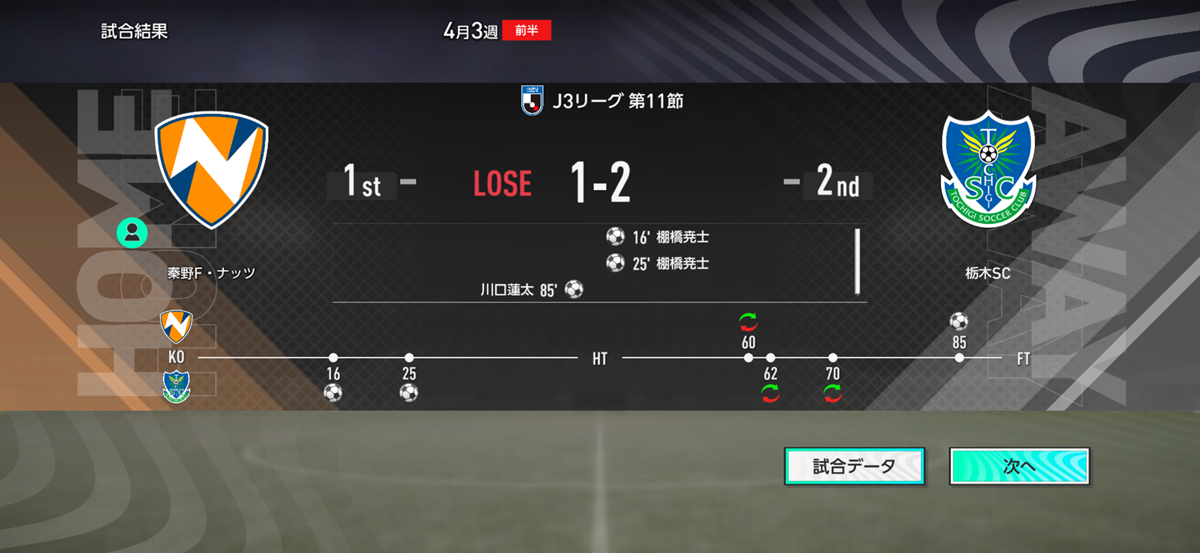 開幕からの勢いを考えると、少しばかり失速気味だね。うちの2枚立て作戦、他クラブのチームスカウティングによって丸裸にされちまったか!?