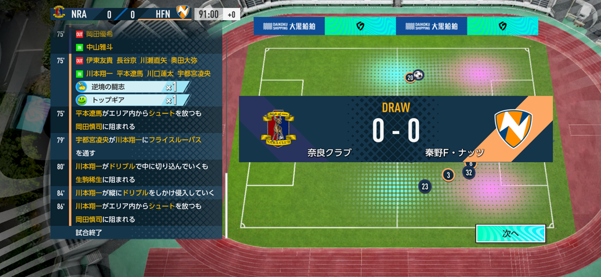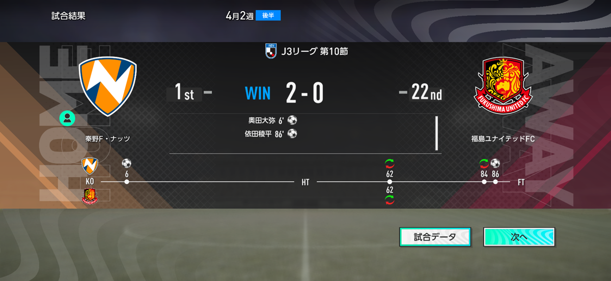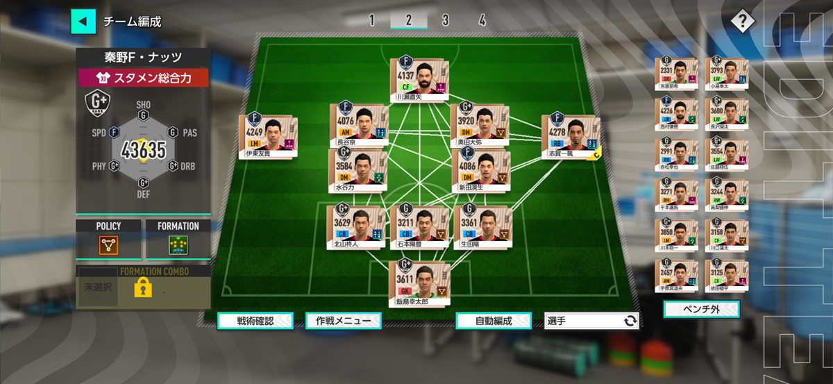 ▲スタメン総合力は相手のほうが3000くらい上だったけど、結果はご覧のとおり。勝ったはいいが2失点してるからプランBはまだまだ発展途上だな。
