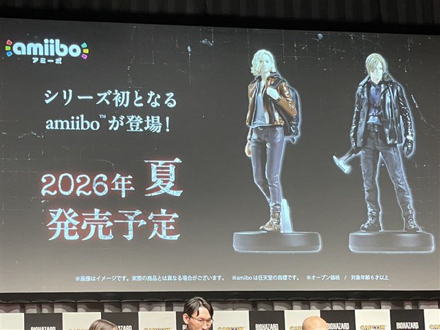 シリーズ初となる「amiibo」が登場。グレースとレオンが2026年夏に発売予定で、読み込むことでそれぞれ特別な武器スキンを使用可能になるとのこと。