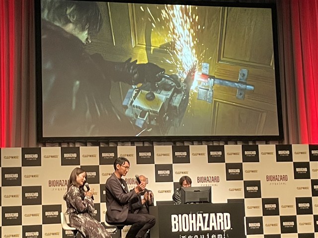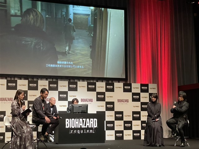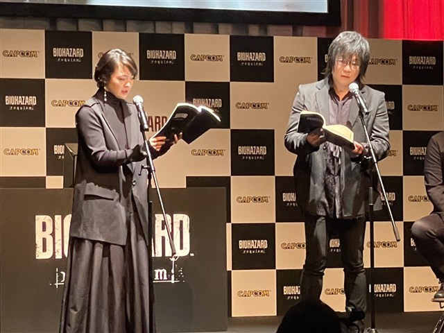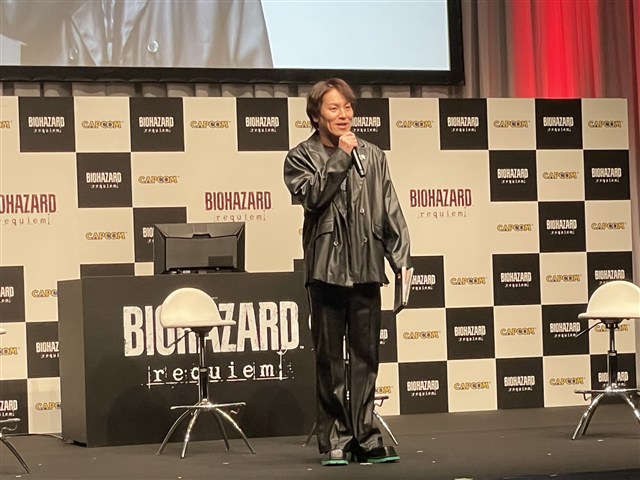 会が始まると、まずはカプコン『バイオハザード レクイエム』ディレクターの中西晃史氏、同じくカプコン『バイオハザード レクイエム』プロデューサーの熊澤雅登氏が登壇。無事にこの完成披露発表会を迎えられたことについてファンへの感謝を示しつつ、挨拶を行った。