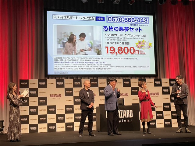 本会では、本作のディレクター・中西晃史氏、プロデューサー・熊澤雅登氏が『バイオハザード レクイエム』の紹介を行うほか、シリーズ30周年記念施策やコラボレーション施策の紹介など、最新情報の発表を実施。また、ゲストとして「バイオハザード」好きを公言し、ゲーム実況も行うお笑い芸人・狩野英孝さんがゲームプレイを披露。本作で声優を務める森川智之さん、ゲーム声優初挑戦となる貫地谷しほりさんによる生アフレコ、通信販売のCMでおなじみの夢グループとのコラボ企画の発表を行った。