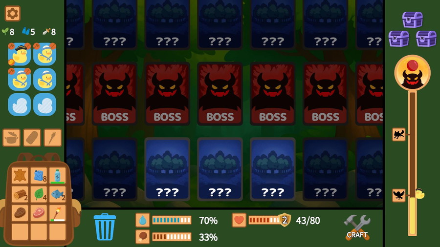 カードで構成された島を舞台に、探索、戦闘、キャンプといった行動カードを選択しながら進行する戦略型サバイバルゲームである。プレイヤーは限られた行動回数の中で、空腹、水分、体力といったリソースを管理しながら生存を目指す。物語が進行すると特定の夜にボス戦が発生し、それまでの準備や選択の積み重ねが結果に反映される設計だ。