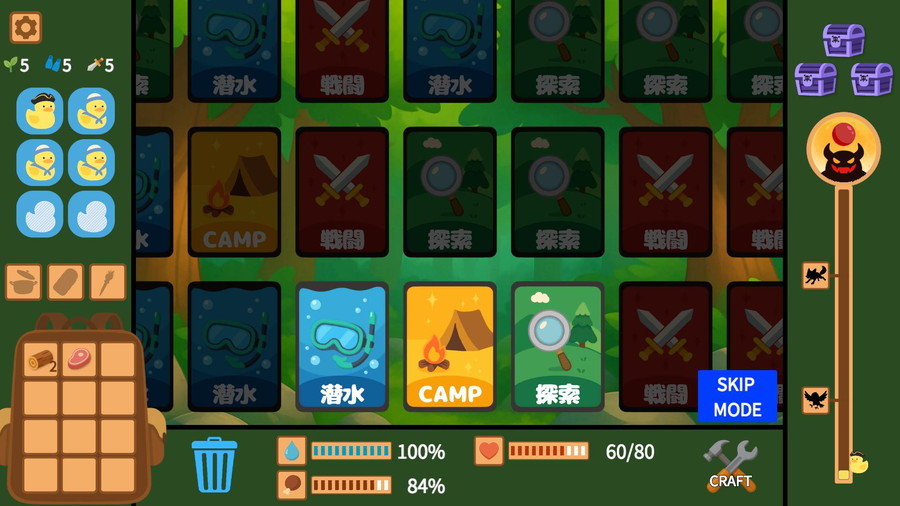 開発は「サバイバルゲームにおける複雑なシステムを、カード形式に圧縮できないか」という発想からスタートした。3D空間を自由に探索する代わりに、「どの行動を選ぶか」という判断に重みを集中させることで、コンパクトながらも緊張感のある体験を狙っている。行動回数の制限、リソース管理、そして夜のボス戦が連動し、「準備の重要性」と「選択の責任」を強調するデザインとなっている。