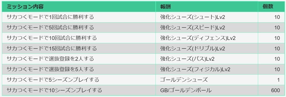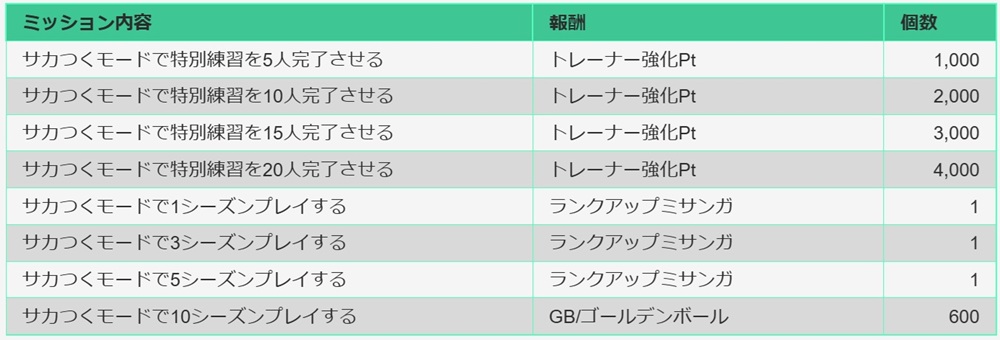 期間中、サカつくモードをプレイすることで達成できるイベントミッションが開催。
