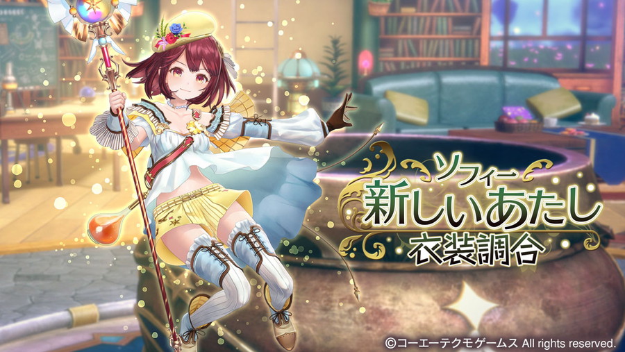 ドレスジュエルを使用してキャラの衣装やアイテムを獲得できる新要素「衣装調合」を実装した。初開催となる「ソフィー 新しいあたし 衣装調合」では、ソフィーの見た目を変更できる衣装「新しいあたし」や、複数のアイテムが封入された絢爛な宝箱などのアイテムセットを獲得できる。「ソフィー 新しいあたし 衣装調合」はSTEP7で衣装「新しいあたし」が確定で獲得可能なステップアップ形式だ。