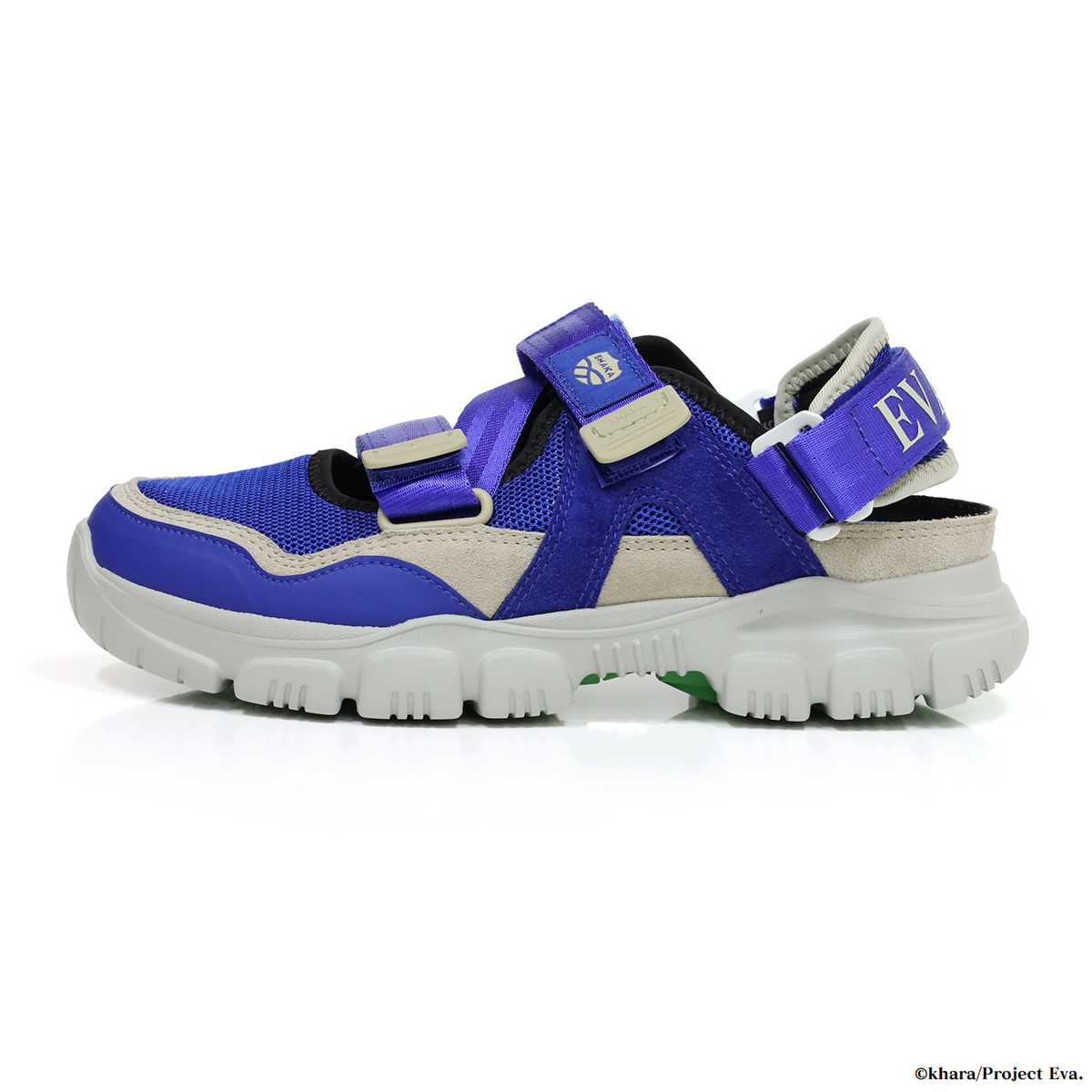 インソー ルには綾波レイの髪色を想起させるカラーを採用し、プリントロゴはプラグスーツカラーをイメージしている。