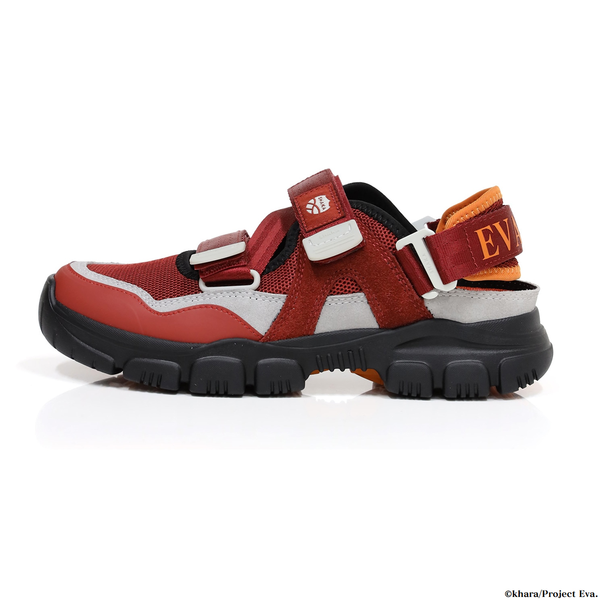 機体カラーの赤をベースに、弐号機を想起させるオレンジをラバーソールに配色。