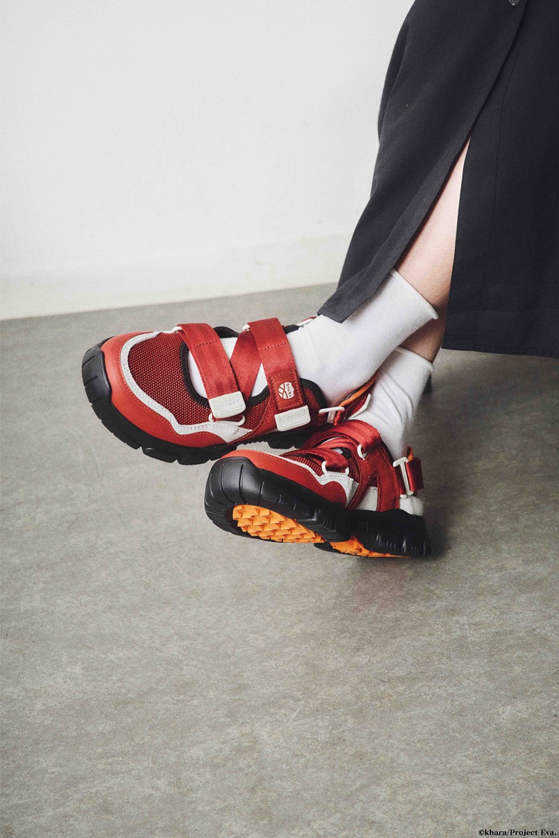 インソールとプリントロゴには惣流・アスカ・ラングレーのプラグ スーツカラーを採用。
