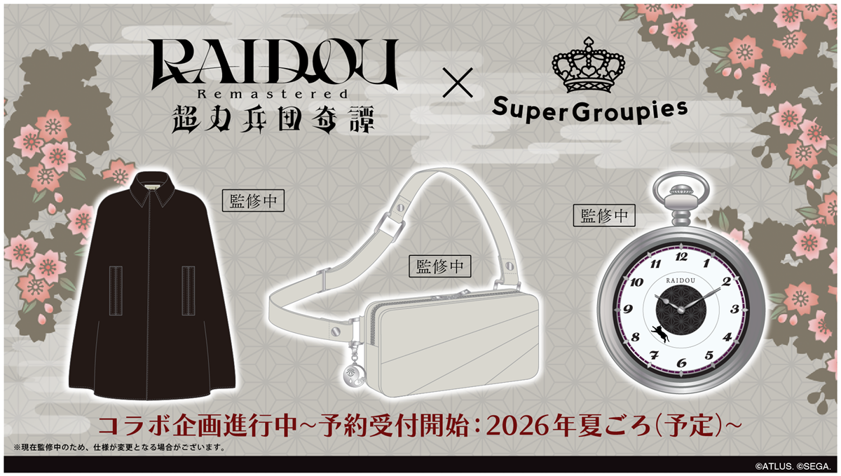 『RAIDOU Remastered: 超力兵団奇譚』と、様々なコンテンツやパフォーマーとコラボしたアイテムを提案するSuperGroupiesのコラボレーションが企画進行中!