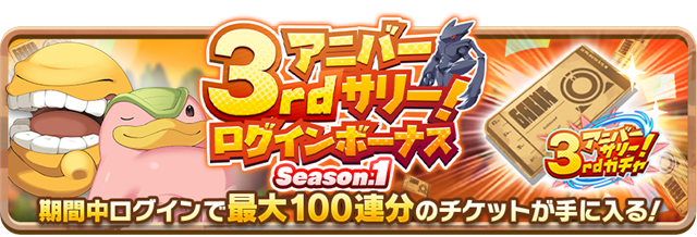 10日間ログインで最大100枚の「3rdアニバーサリーチケット」獲得できるログインボーナスを開催する。チケットは「3rdアニバーサリーガチャ」で使うことができる。