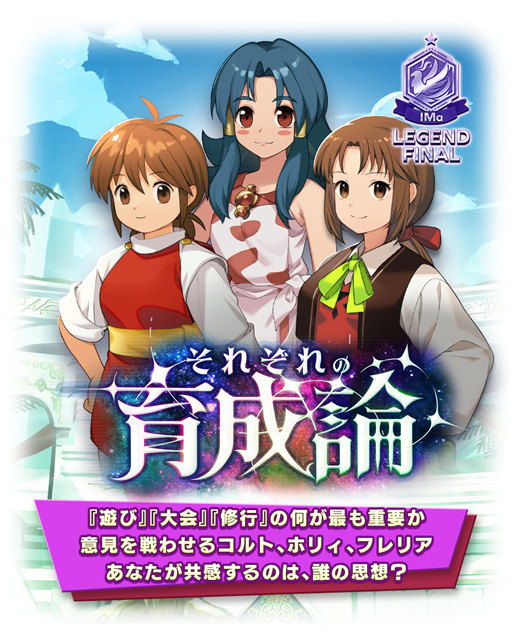 「遊び」「大会」「修行」の何が最も重要か…意見を戦わせる「コルト」、「ホリィ」、「フレリア」。あなたが共感するのは、誰の思想?