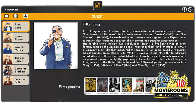 ゲームプロデューサー兼クリエイティブディレクターのArianna Lona氏は、「『Movierooms』は単なるシネマタイクーンではなく、映画の歴史を巡る旅です。小さなインディーチームによって作られ、コミュニティと共に形作られており、すべてのアップデートが、大スクリーンへの愛と新たな物語、そして挑戦をもたらします」とコメントしている。