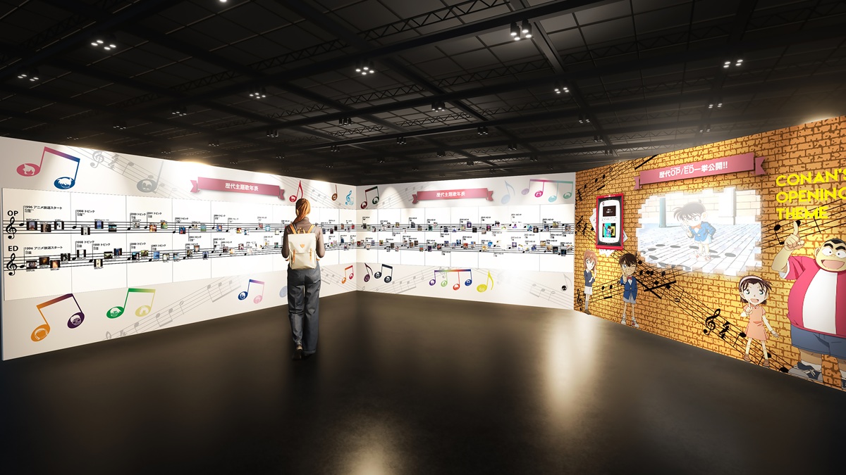 TVアニメには欠かせない主題歌。TVアニメ「名探偵コナン」の主題歌にスポットを当てて、歴代のCDジャケットや年表を展示している。