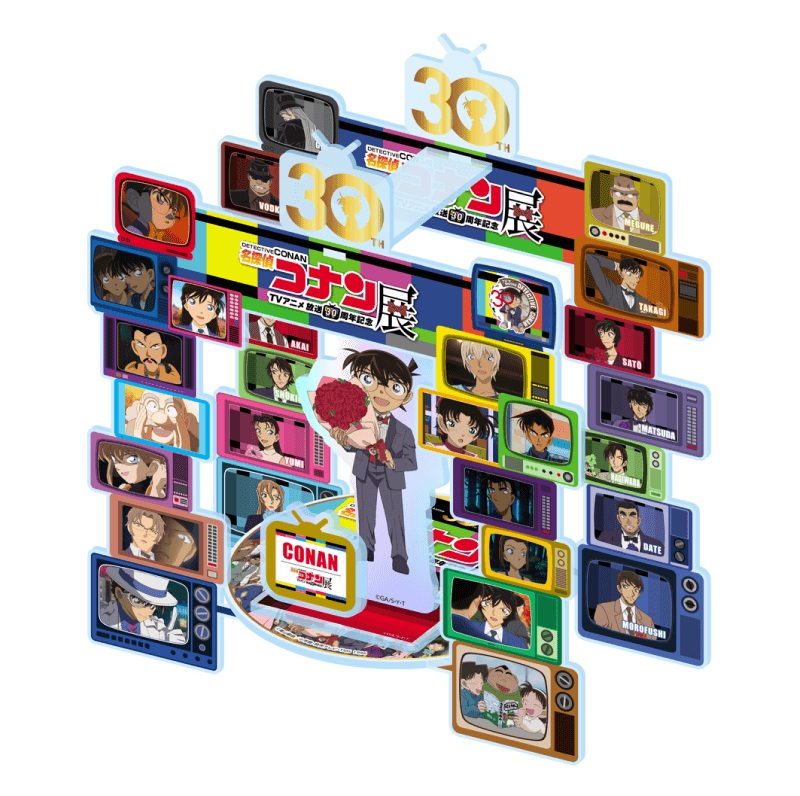 特典付き入場チケットは、コナンと30キャラクターがデザインされた「アクリルディスプレイスタンド」を会場で受け取ることができるグッズ付きの入場券となる。