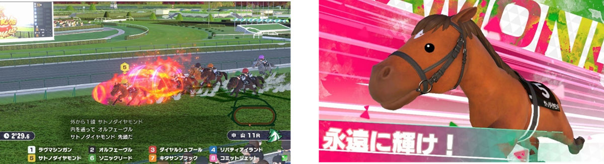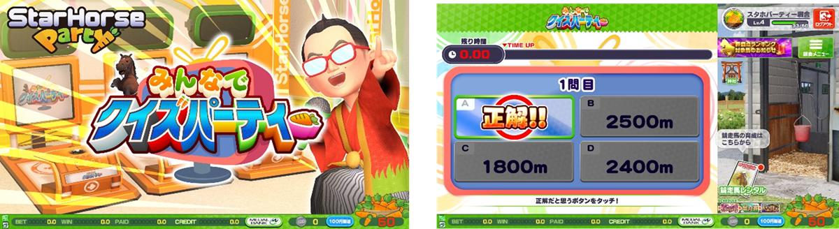 また、同じ筐体のプレイヤー同士で楽しめるコンテンツ「みんなでレースパーティー」「みんなでクイズパーティー」などのシリーズ初めてとなるコンテンツだけでなく、カジュアルながらも実況はシリーズおなじみの杉本清氏が担当するなど、競馬ファンも楽しめる本格的な要素も満載。
