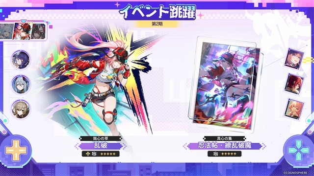 同時開催のイベント跳躍・光円錐「真心の集」では、「黄金の血で刻む時代」「忍法帖・繚乱破魔」と「人生は遊び」の出現率がアップする。