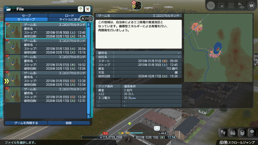 安心のオートセーブ機能を搭載しており、10分ごとに最大5つまでオートセーブのデータを残しておける。操作を間違えてしまっても、直前から開発をやり直せる。