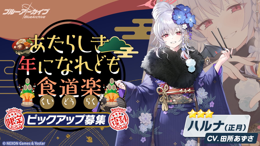 Yostarは、『ブルーアーカイブ -Blue Archive-』(開発:NEXON Games社)において、3月4日メンテナンス後より、イベント「秘密のミッドナイトパーティー ~オニの手は鐘と共に~」を復刻開催することを発表した。また★3 「コユキ(パジャマ)」が新登場するピックアップ募集や、★3 「ユウカ(パジャマ)」、★3 「ノア(パジャマ)」、★3 「ハルナ(正月)」、★3 「フウカ(正月)」がそれぞれ対象となる復刻ピックアップ募集も実施する。