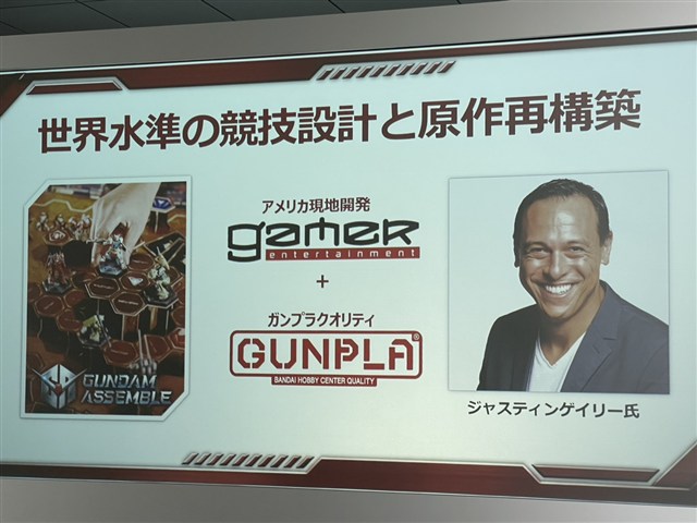 従来のミニチュアゲームは、1プレイに数時間要するものが一般的だが、本作は濃密な戦略体験を現代的なスピード感で楽しむことが可能となっている。また、ガンプラの造形美とゲームの競技性を合わせることで、世界中でリーグ戦が開かれるようなグローバルな競技タイトルへと育てていきたいと展望を述べた。