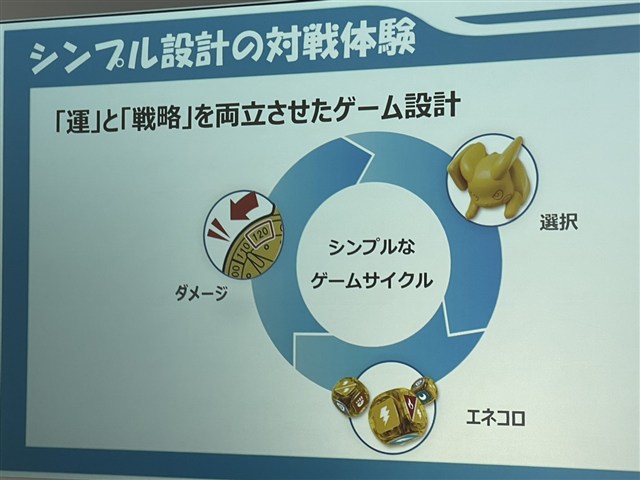 具体的には、当時から子供を取り巻く遊びの環境が変化しているため、1プレイ10分前後で遊べるようプレイ時間を大幅に短縮。エネコロをカスタムできる箇所を2面から4面に増やしたことで、当時より技が決まりやすくなっている。これによりスピーディーなゲーム性を実現した一方で、ポケモンタイプを11タイプに拡大して戦略性の幅を増加。キャラコロの向きによって追加効果が得られるなど、新たな要素も加わっている。