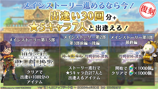 ◆★5 キャラクター7 人やクロノスの石がもらえる!メインストーリー応援キャンペーン開催中!