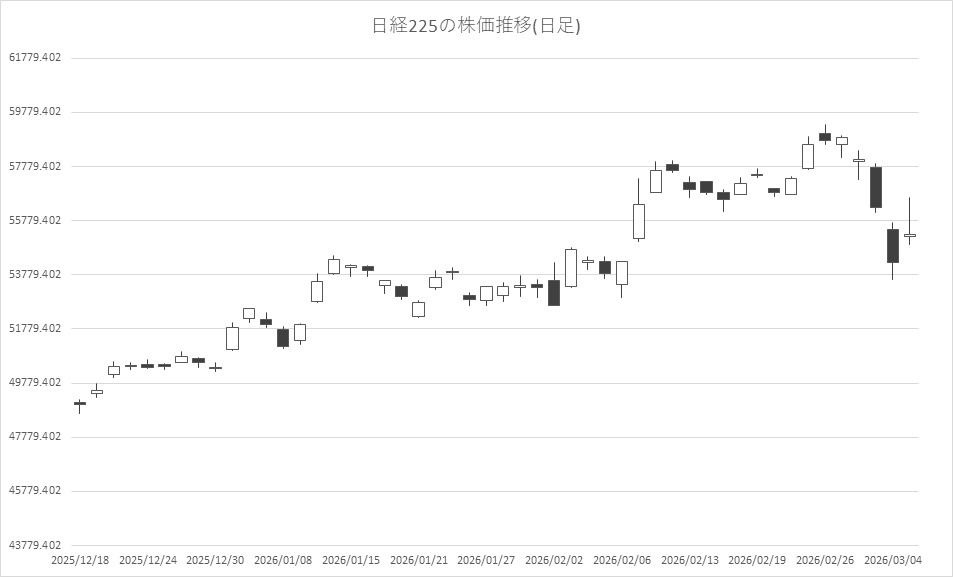 3月5日の東京株式市場は反発。日経平均株価は、前営業日比1032円52銭高の5万5278円06銭でこの日の取引を終えた。中東情勢の悪化を受けて前日まで大きく下げていたこともあり、この日は買い戻しや自律反発狙いの買いが入った。一時は2374円高まで買われる場面があったが、買い一巡後は伸び悩んだ。市場では、イランの停戦打診報道が好感されたが、中東情勢への不透明感は残っており、当面は上値の重い展開を想定しているとの見方もあった。