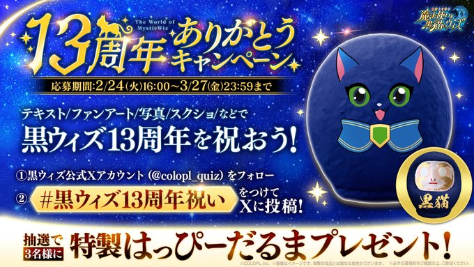 応募規約などの詳細は『黒猫のウィズ』公式X(https://x.com/colopl_quiz)を確認しよう。