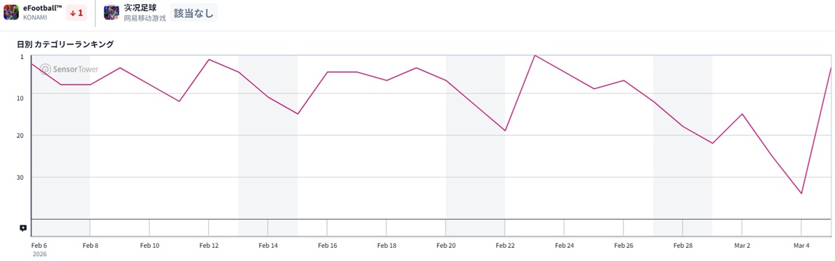 | 4 | 34 | ↑30 | eFootball | コナミデジタルエンタテインメント<9766> |
