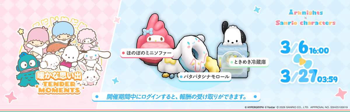 Yostar は『アークナイツ - 明日方舟 -』で、3 月 6 日(金)より、サンリオキャラクターズとのコラボキャンペーンを開催する。