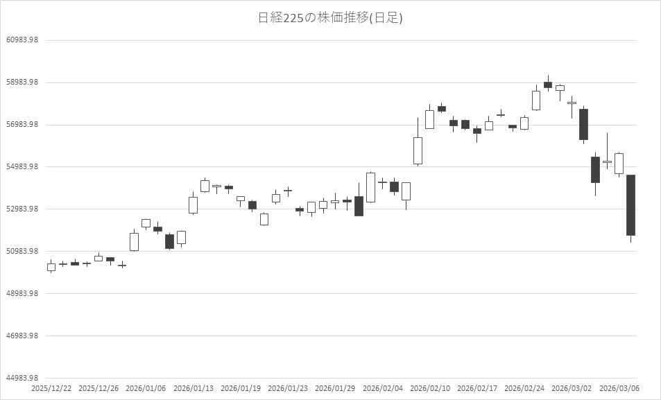 3月9日前場の東京株式市場は大幅反落。日経平均株価は、前営業日比3880円38銭安の5万1740円46銭で午前中の取引を終えた。中東情勢緊迫化の長期化や米国雇用情勢の悪化を背景にした景気減速への懸念を受けて売りが膨み、一時は4000円を超える下落となった。さらに足元では原油相場が急騰しており、物価高と景気後退が同時に進むスタグフレーションへの警戒も相場心理を圧迫しているという。
