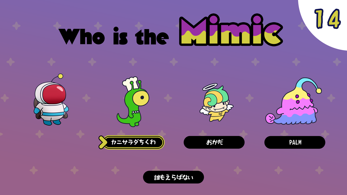 「PANICOOK」は、宇宙のどこかに存在するレストランを舞台に、4人のプレイヤーがシェフとなって料理を提供するゲーム。ゲーム開始時、4人のうちたった1人だけに「You are MIMIC」というメッセージが届く。そのプレイヤーは、シェフに擬態した宇宙人「ミミック」として、人間たちの中に紛れ込むことになる。