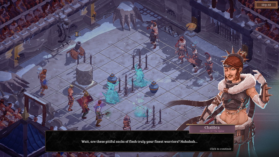 ・高度に戦術的なターンベースバトル:グリッドベースのアリーナ戦闘をマスターし、強力なアビリティを解き放ち、罠や消耗品、神の力を利用して戦いの流れを変える。