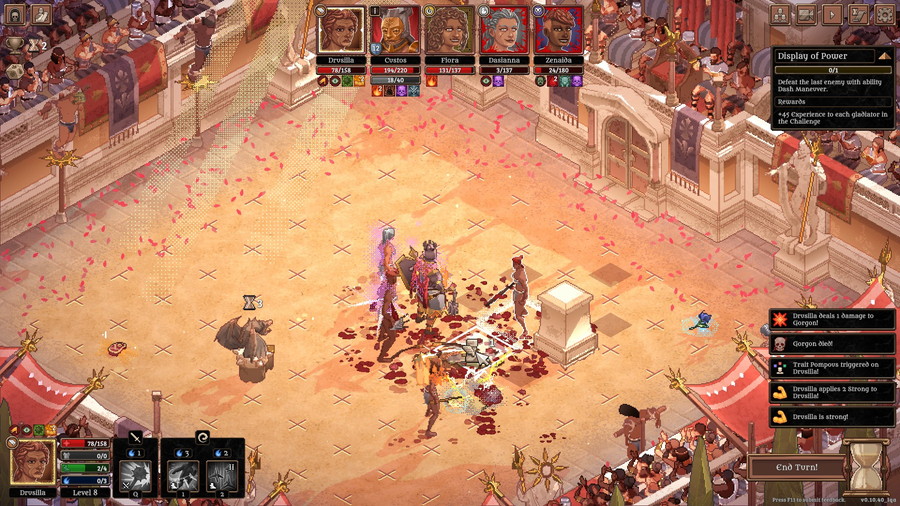 ・奥深い部隊管理:グラディエーターを募集、訓練、アップグレードし、ユニークなクラスの組み合わせを構築。トラウマ、ステータス効果、名誉を求めるリスクのバランスを取る。