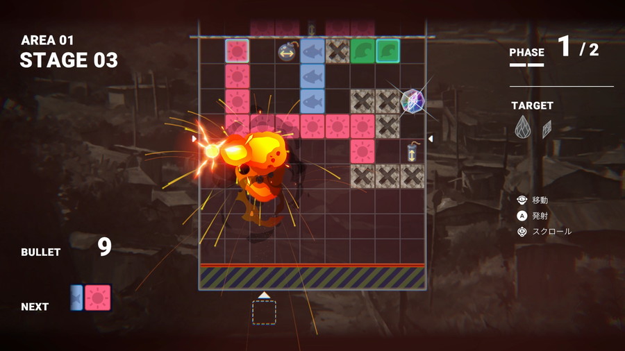 パズルが苦手な人や、早くストーリーを進めたい人向けに“トリガーハッピー”モードを搭載し、必ず爆発する弾でステージ上のブロックを蹴散らしながらクリアできる。過去から今へと繋がる物語の結末は、プレイヤーの選択と行動によって決まる。