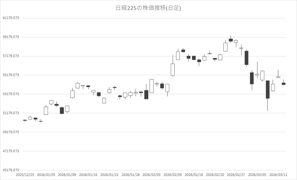 3月12日前場の東京株式市場は反落。日経平均株価は、前営業日比848円22銭安の5万4177円15銭で午前中の取引を終えた。イラン情勢の長期化が懸念されるなか、原油先物価格の上昇を受けてスタグフレーションへの懸念が強まり、一時918円安まで売られる場面があった。