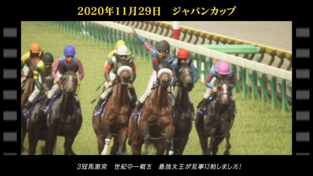 また、2020 年のジャパンカップの展開を再現した専用ムービーも登場。キセキの大逃げを直線で捉え、追いすがる3冠馬2頭を堂々破ったアーモンドアイの勇姿が、本作ならではのカメラワークを駆使してドラマチックに映き出される。