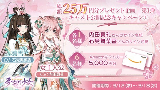 事前登録期間中(3月12日から4月22日まで)、公式Xにて総額25万円分プレゼント企画を全6弾に分けて実施する。人気声優の直筆サイン色紙やAmazonギフトカードなど、様々な豪華報酬を手に入れるチャンスだ!