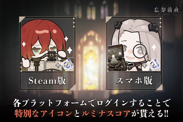 Steam版リリースを記念して、Steam版やAndroidまたはiOS版でログインするとルミナスコアに加えて、それぞれのプラットフォームに応じた特別なアイコンをゲットできる。