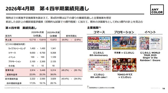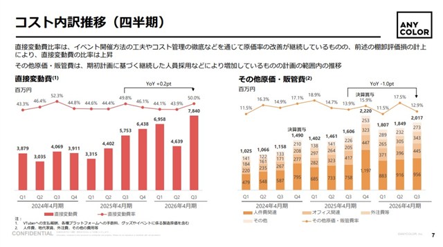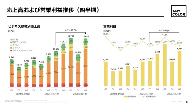 ANYCOLOR<5032>は、3月11日に2026年4月期の第3四半期累計(5~1月)決算(非連結)を発表した。今回はその決算説明資料から同社の第3四半期期間(11~1月)の業績の状況を見てみたい。