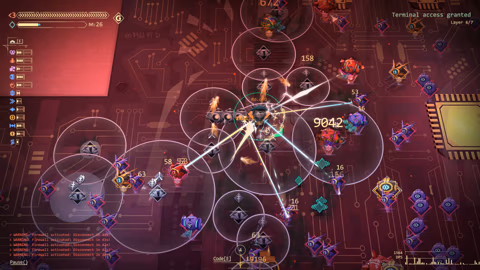 本作は、独自のコーディング要素を持つ、弾幕シューティングだ。プレイヤーはビジュアルコーディングインターフェースで攻撃パターンをプログラミングする。190種類以上のドラッグ&ドロップノード、相乗効果を生む最適化ピック、そしてランを定義する改造ドロップを組み合わせていく。敵の大群は強さとバリエーションを増し、回避スキルだけに頼る者には容赦しないため、各チャレンジに合わせたカスタムアプローチが生存には不可欠となる。