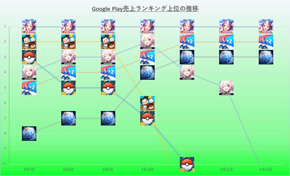 | 10 | 7 | ↓3 | ゴシップハーバー:マージ & ストーリー | Microfun |