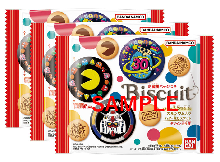 今回新たに導入する『刺繍缶バッジビスケット』株主優待限定バージョンは、1000ポイントで1セット(ビスケット3袋、刺繍缶バッジ3点)の申し込みが可能だ。2026年のテーマには「パックマン」「ガンダム」「たまごっち」を採用する。