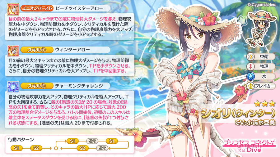 Cygamesは、『プリンセスコネクト!Re:Dive』において、3月16日(月)10時から、楽しいを言葉にする病弱少女★3シオリ(ウィンター)(CV:小清水亜美)が登場していると発表。