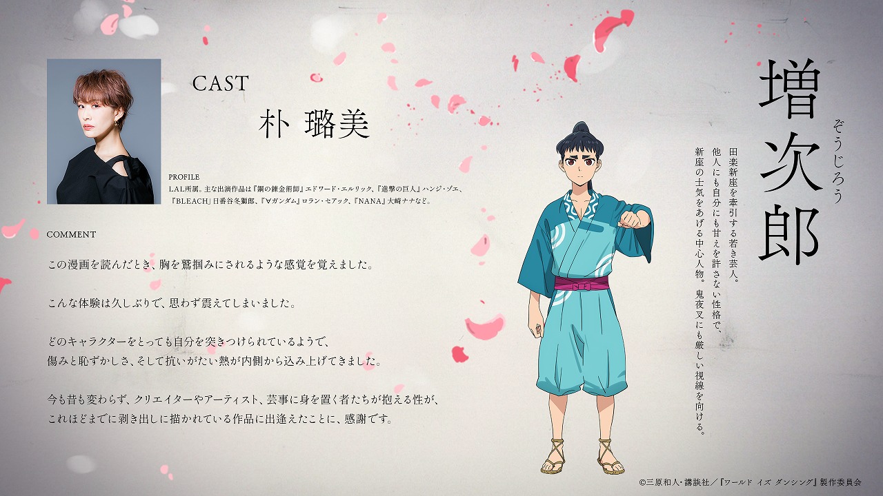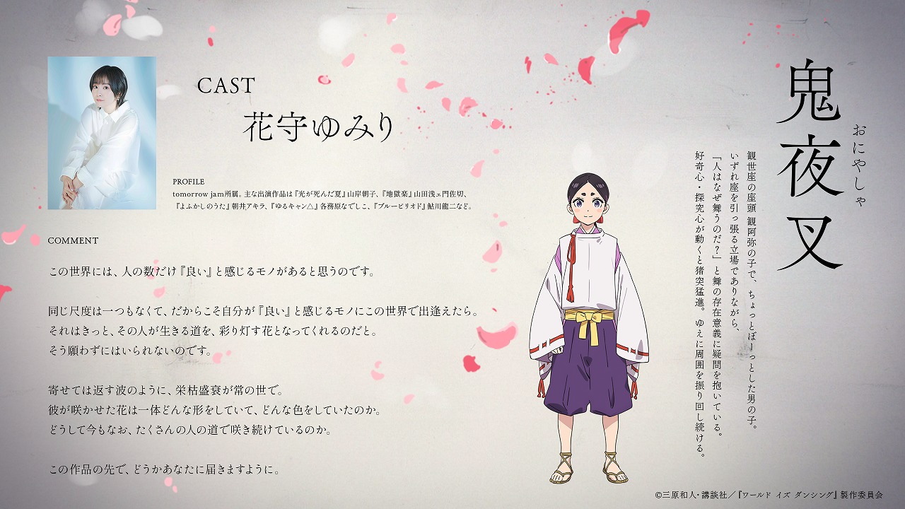 また、新たなティザーPVを公開。「舞っても舞わなくても人は死ぬのだ」花守ゆみり演じる鬼夜叉(後の世阿弥)の衝撃的なセリフから始まるティザーPVでは、新たなキャラクター・キャストが続々と解禁になった。世阿弥の父であり世阿弥と同じく能を大成させた人物として知られている観阿弥役を小西克幸が演じる。さらに土屋神葉、内田真礼、朴?美、石谷春貴の出演がティザーPVで解禁となった。