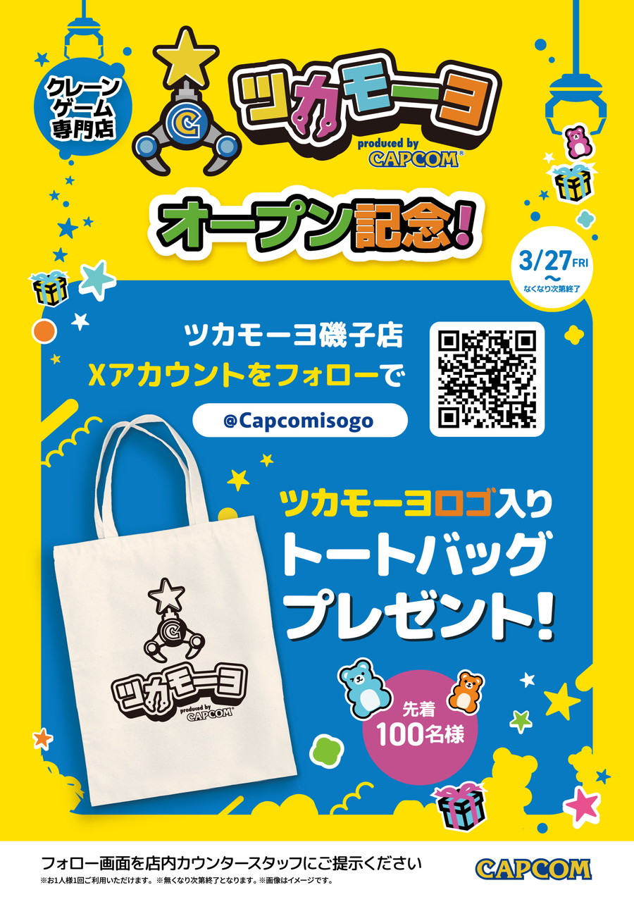グランドオープンとなる3月27日からは、磯子店のオープンを記念したオリジナルトートバックのプレゼントキャンペーンを実施する。ユーザーは『ツカモーヨ』磯子店公式Xをフォローし、フォロー画面を店内のカウンタースタッフに提示することで、トートバックを1アカウントにつき1枚受け取ることができる。本イベントは賞品がなくなり次第終了となる。