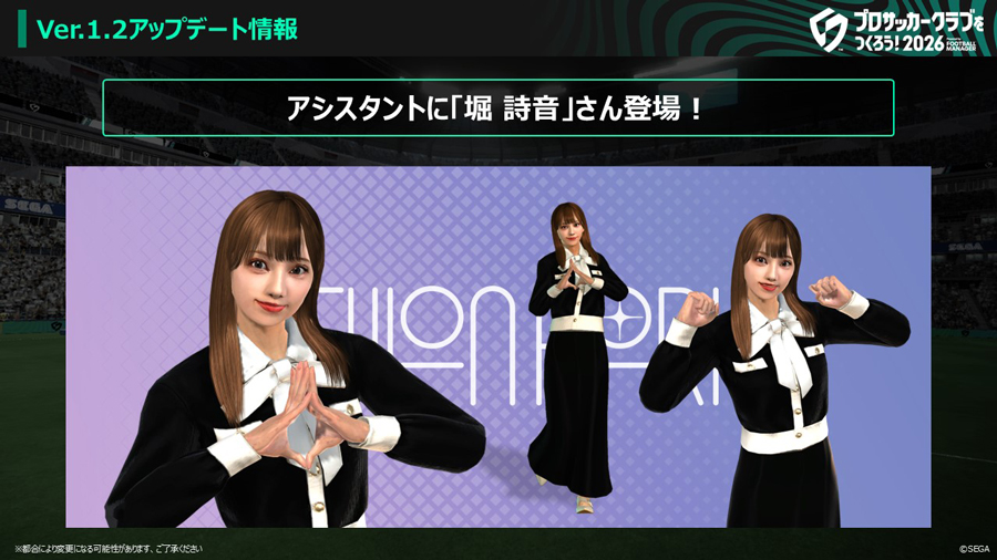 昨年実施した投票企画“サカつく アシスタントをつくろう!”において、見事最多得票をおさめた「堀詩音」さんが、新たなアシスタントとして『サカつく2026』に登場!