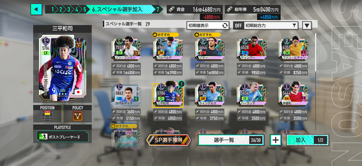 ちなみに俺はSP選手の加入については、別に否定的ではない。ただ、J3リーグからスタートしたオリジナルクラブにメッシやらC・ロナウドやらワールドクラスの選手が所属していることが現実的じゃねーなと。これ、あくまでも個人的な考えね。(ゲームだから自由に遊べばいいと思いますよ)