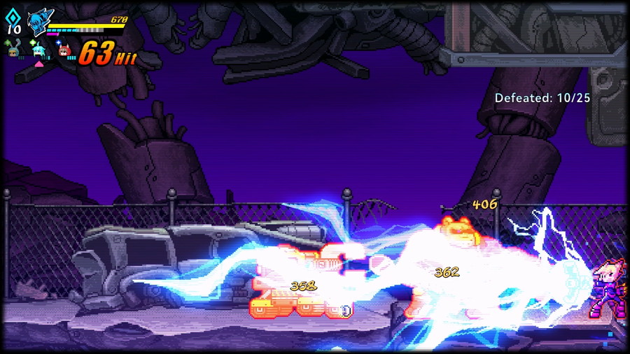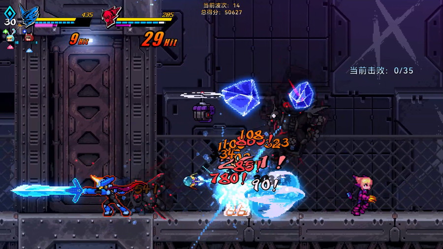 Muuはエネルギーの爪を使う近接戦闘ロボットファイターで、俊敏な動きと連続コンボ攻撃で大ダメージを与え、敵を空中に打ち上げて追撃できる。Kellyは銃器と戦術的な格闘術を専門とする強化人間で、高いスキルを持ち、戦場全体を完全に指揮できる。横スクロールプラットフォームとローグライク戦闘を特徴とする、内臓に響く宇宙の冒険を楽しめ。爆発的なコンボチェーンを組み、オーバードライブバースト攻撃を解き放ち、強力な敵を打ち破る。